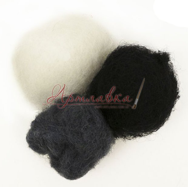 Набір вовни для валяння "Чорно-білі відтінки", кардочес, 3х10г