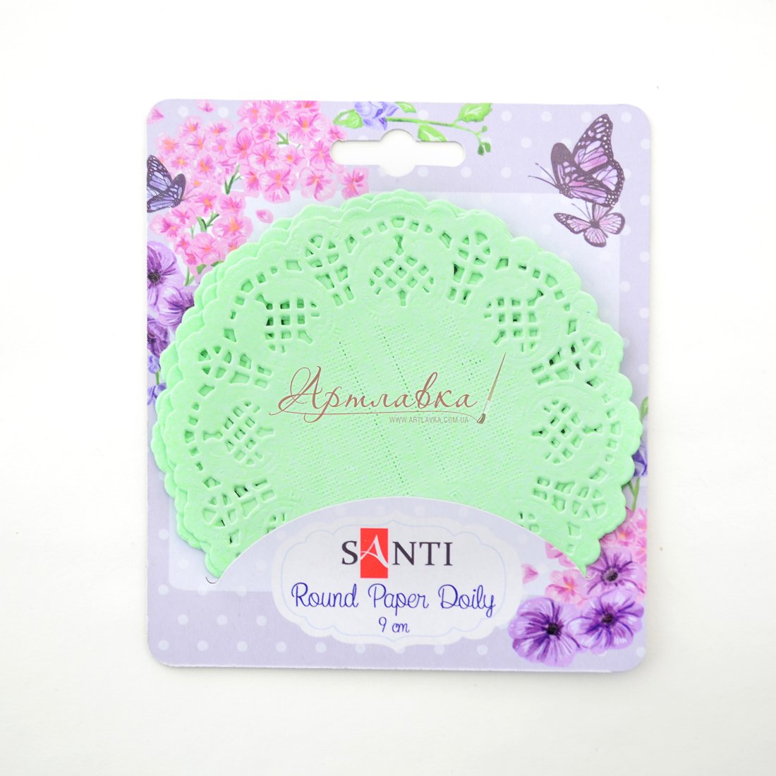 Набір ажурних паперових серветок, ніжно-зелені, 9см, 12шт/уп