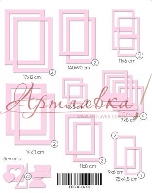 Набір рамок "Pink" №1 з фольгуванням, 39шт