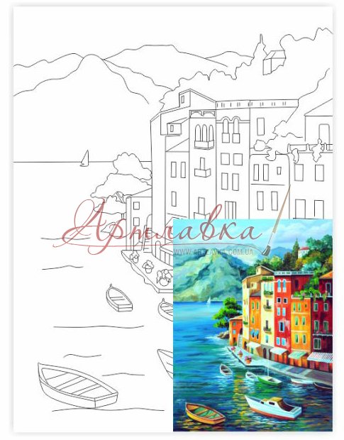 Полотно на картоні з контуром "Морський пейзаж", 30*40см, бавовна