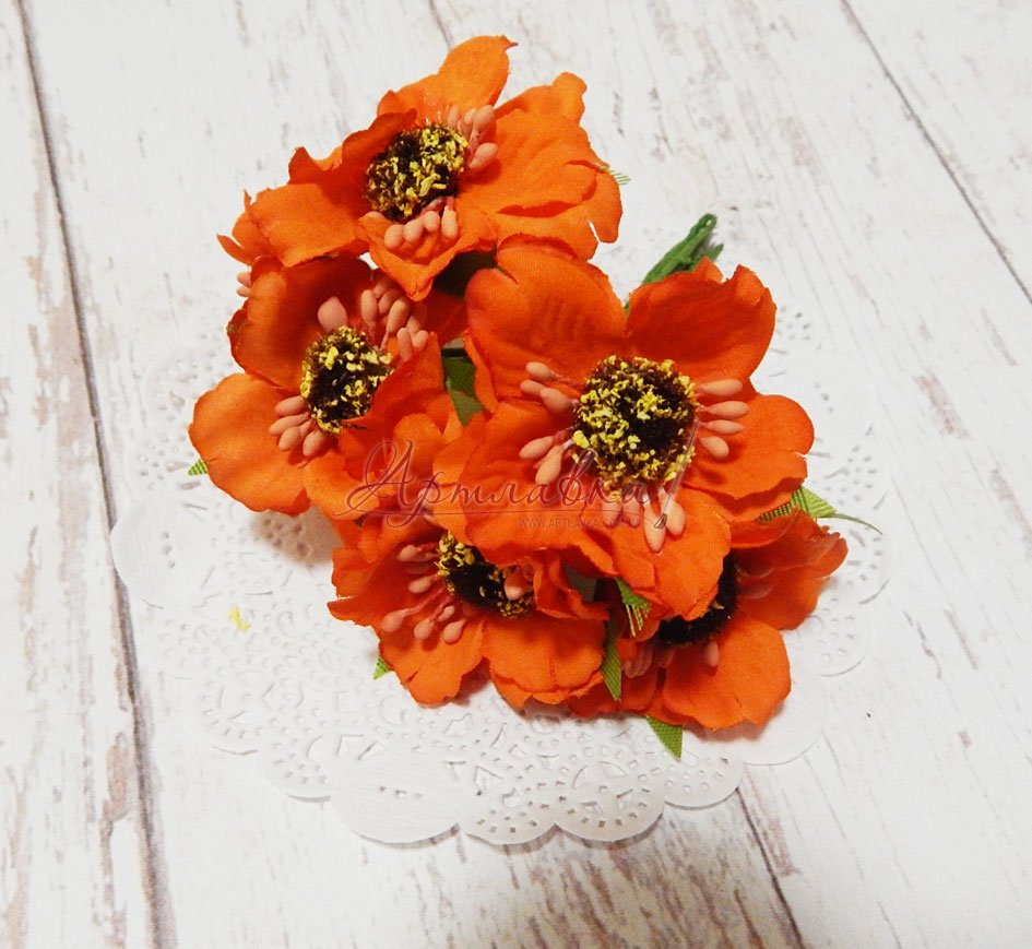 Маки жовтогарячі, тканинні, 6 шт/уп.