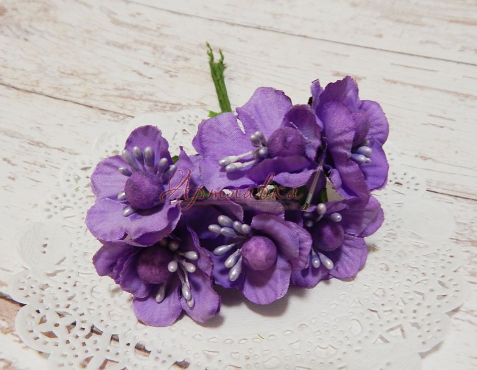 Квітки персика бузкові, тканинні, 6 шт/уп.