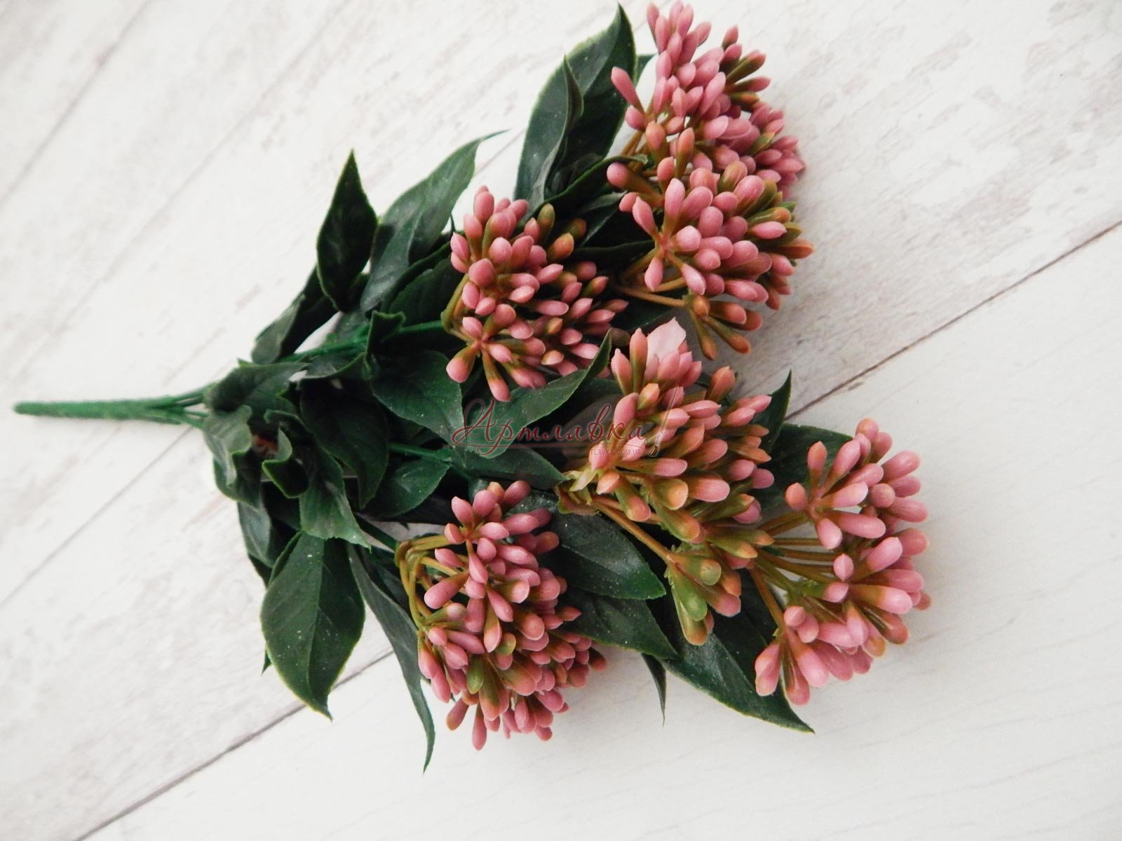 Штучна гілочка з яскравими рожевими квітками каланхое із пластику. Довжина загальна 31 см, висота травички із квітами 20 см. У букеті 7 гілочок.
