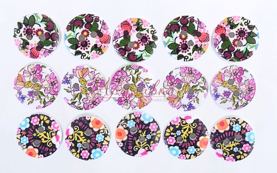Ґудзика декоративний "Бордові квіти", 18мм, 15шт/уп.