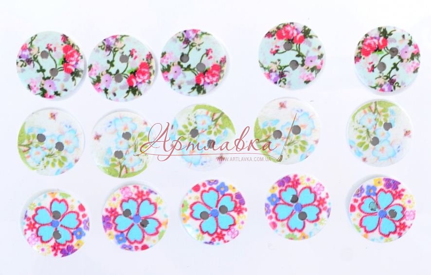 Ґудзика декоративний "Блакитні квіти", 18мм, 15шт/уп.