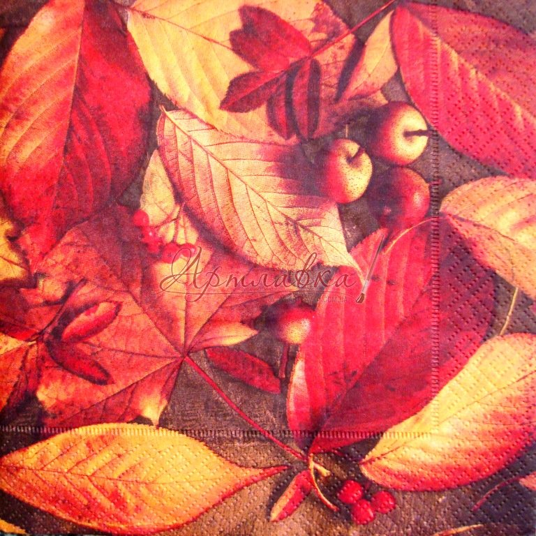 Головна › Декупажна серветка "Осінні листи, ягоди", 33*33см