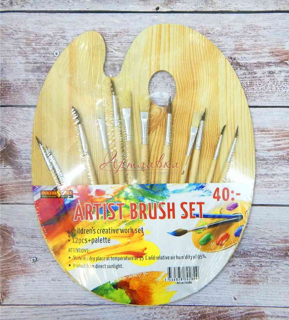 Набір синтетичних пензлів Dollar, 12 шт+палітра