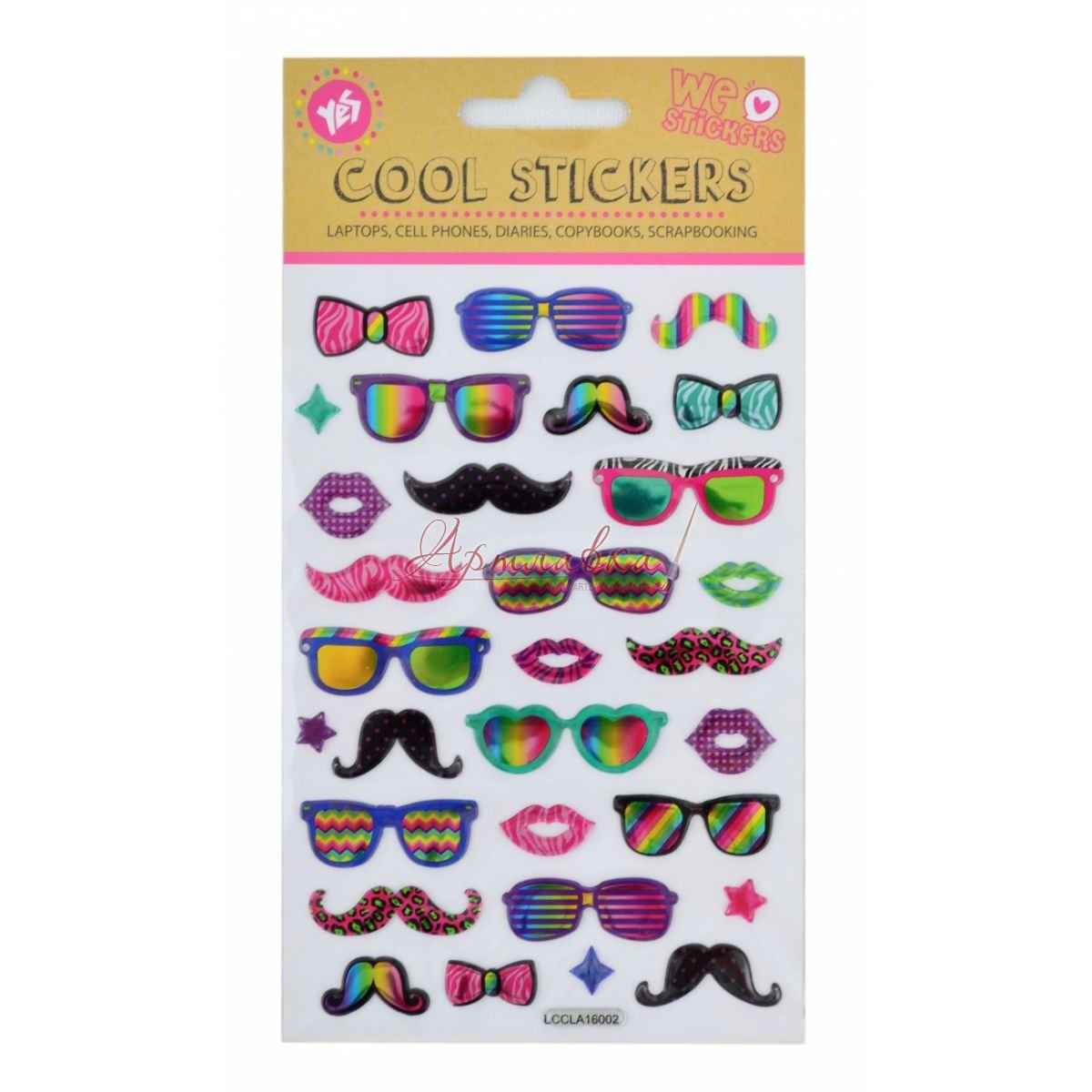 Стікери об'ємні "Вуса й окуляри", 30шт/уп