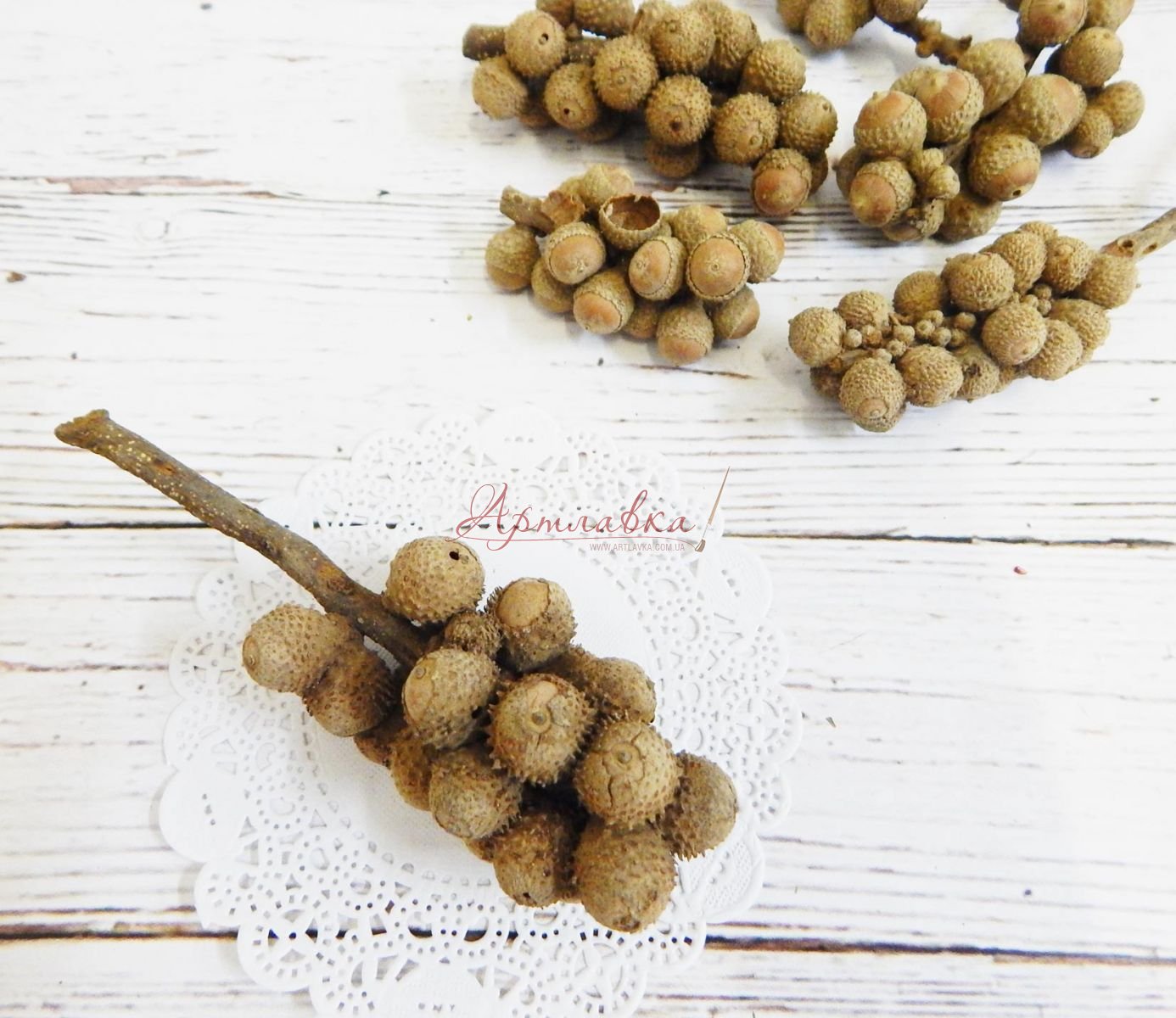 Натуральні маленькі жолуді на гілці висушені. Довжина гілки 8-12 см, розміром жолудя 1,5 см. Дуже гарні мініатюрні плоди ідеально виглядають в осінніх букетах, ікебанах, панно, доповненням до подарунка вчителеві й інших декораціях. Ціна зазначена за 1 гілочку. Виробник - Польща.