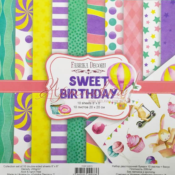 Набір паперу для скрапбукінгу "Sweet Birthday" 20x20см, 10л.