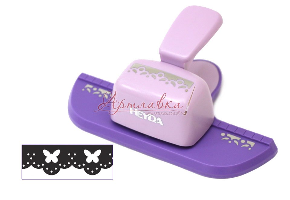 Бордюрний діркопробивач великий, має зручний важіль для проколювання паперу 160г/м2. За допомогою такого діркопробивача можна прикрасити сторінки альбому або листівки дивним візерунком по краю аркуша.