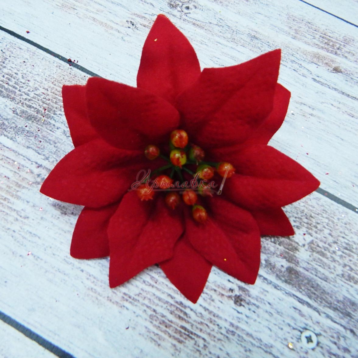 Квітка Пуансеттия червона оксамитова