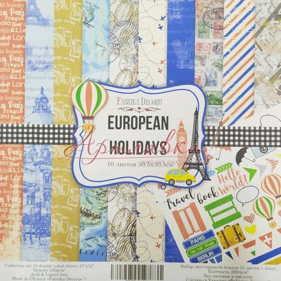 Набір паперу для скрапбукінгу "European Holidays", 30*30см, 10л+картки