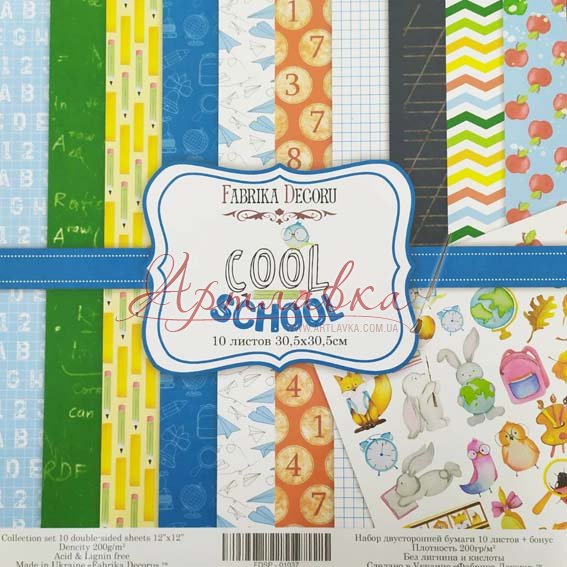 Набір паперу для скрапбукінгу "Cool school", 30*30см, 10л+картки
