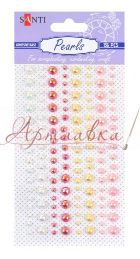 Клейові напівперлини для декорування листівок, альбомів, виробів із тканини. Розмір упакування 12*7см.