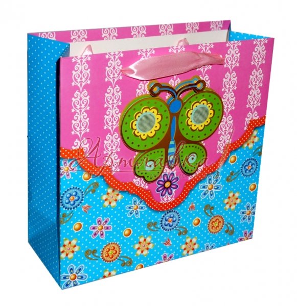 Пакет подарунковий "Метелик на бірюзі", 25х25см