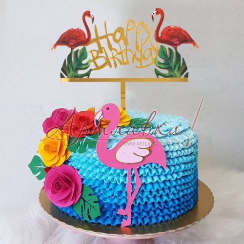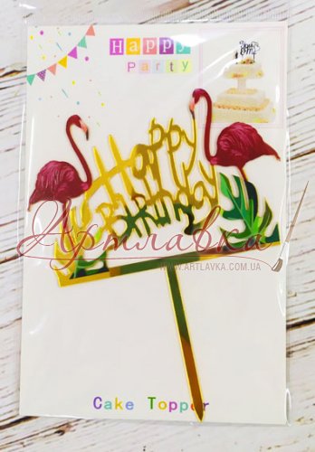 Акриловий золотий топпер у торт із фламінго. Висота ок.15см