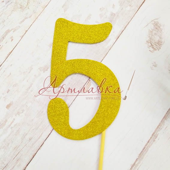 Цифра із блискітками на паличці для святкового оформлення на День народження. Загальна довжина 38 см. Висота цифри 15 см. Така декоративна цифра підійде для прикраси торта, фотозони, святкового стола. Цифра виконана з картону із блискучим нанесенням на дерев'яній паличці.