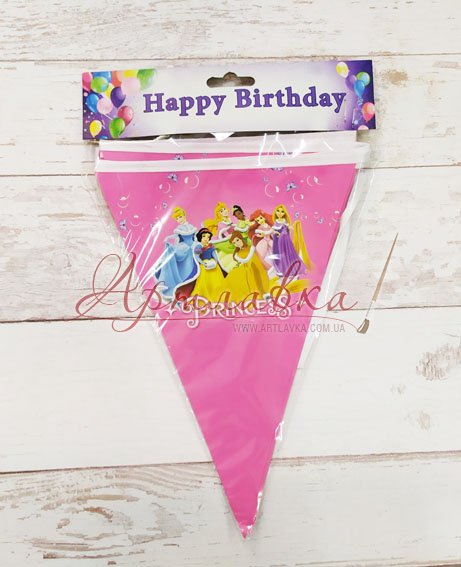 Набір яскравих прапорців у гірлянді для дитячого свята з актуальними малюнками. З таким комплектом свято буде яскравим, а гості задоволені.