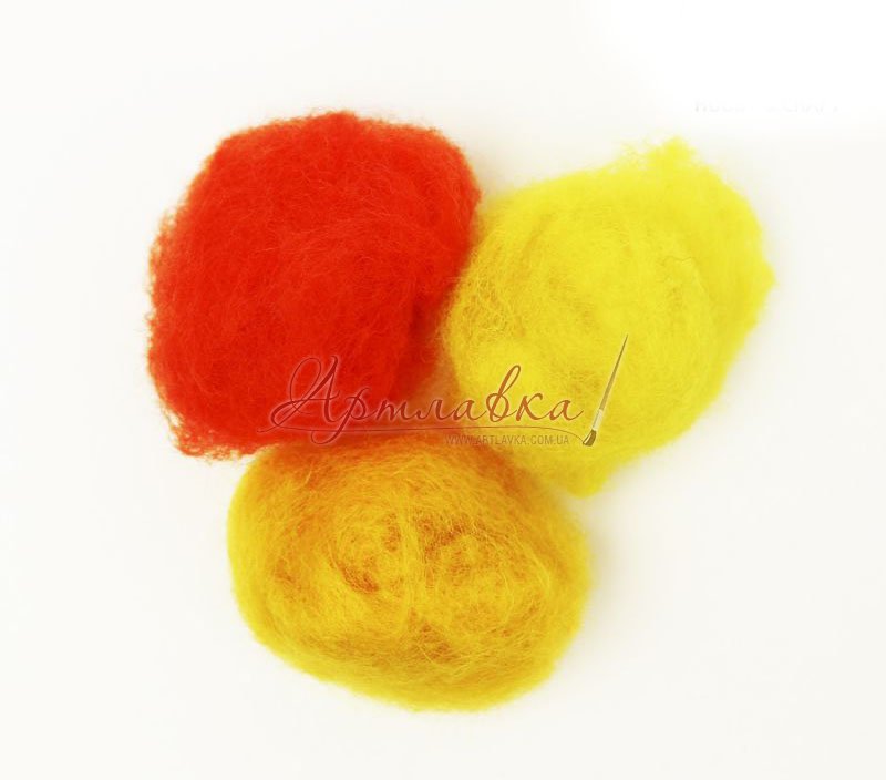 Набір вовни для валяння "Жовті відтінки", кардочес, 3х10г