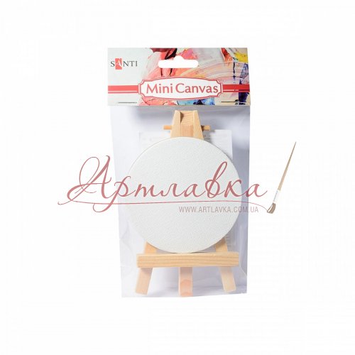 Мініатюрний дерев'яний мольберт із натуральним ґрунтованим дрібнозернистим холстиком, діаметром 9см -оригінальне інтер'єрне прикраса, декор для мініатюрних лялькових композицій і просто сувенір художникові або творчій людині. На полотні можна малювати фарбами, пастами, контурами й ін. матеріалами для творчості. Мольберт, розміром 12*7,5 см, досить стійко стоїть на трьох ніжках (одна відставляється й складається при необхідності) і втримує полотно. Напишіть своє побажання на такій листівці у вигляді холстика й подаруєте в якості сувеніра - Ваш подарунок точно буде оригінальним і займе почесне місце у творчому куточку. А приводів, щоб зробити приємне не треба й шукати.