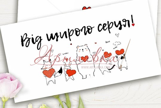 Конверт для грошей у вигляді симпатичної листівки з малюнком на День народження або просто в подарунок