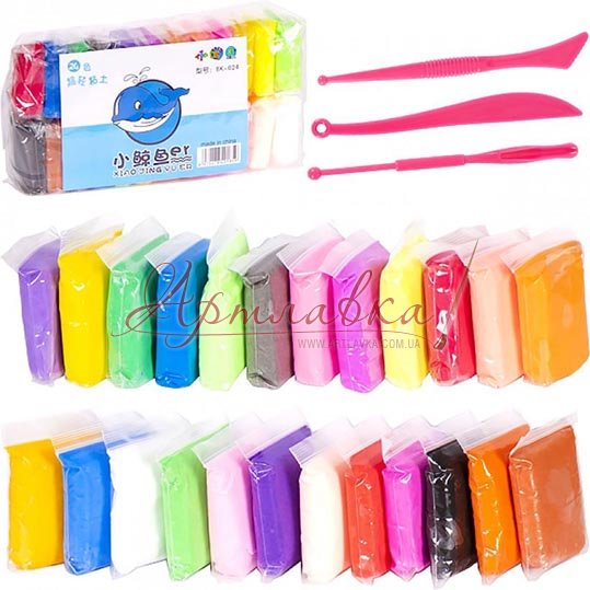 Пластилін повітряний "Ліпака", набір 24 кольори + стеки