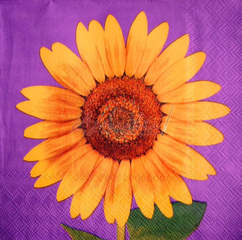 Головна › Декупажна серветка "Соняшник на фіолет.", 33*33см