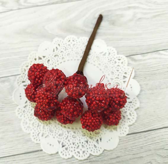Декоративні ягідки червоної шовковиці на евточке, довжина гілки 9см, діаметр ягід близько 1.5см. Ідеальне доповнення для новорічних композицій, віночків, різдвяного декору.