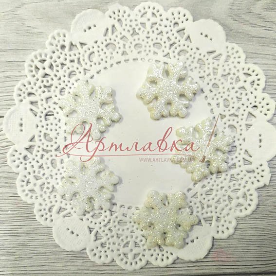 Сніжинка із пластику посипана блискітками для різних новорічних декорацій. Розмір 2 см. Ціна зазначена за 1 шт.