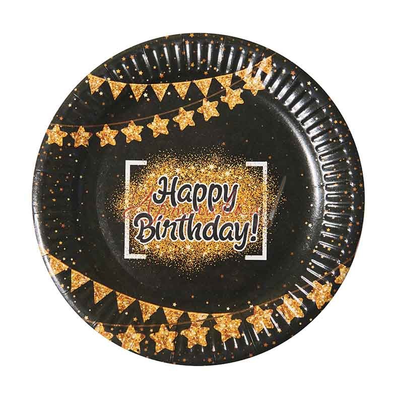 Паперові тарілочки "Happy Birhday Gold stars", 10шт/уп