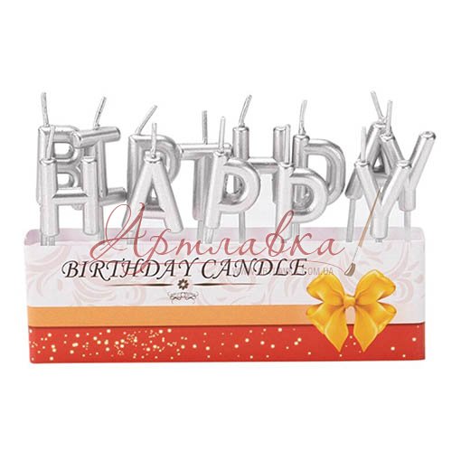 Головна › Набор свічок в торт Happy Birthday, Silver