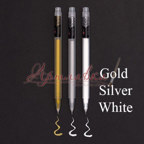 Зображення білими, золотавими та срібними кольорами гелевими ручками - Актуально серед тих, хто захоплюється начерками в на крафтового і чорному паперу, картоні середніх і темних відтінків. До того ж такі ручки - просто знахідка для тих, хто творить скрап-альбомчик й листівки своїми руками.