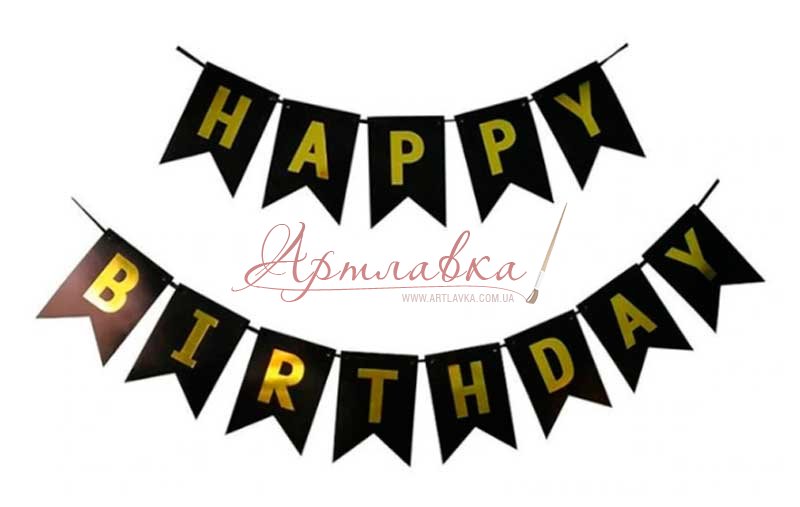 Головна › Гірлянда картонна, прапорці, Happy Birthday чорна