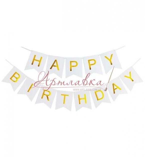 Головна › Гірлянда картонна, прапорці, Happy Birthday біла