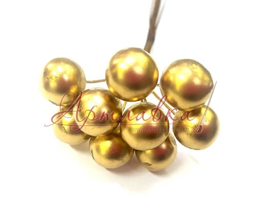Ягідки для новорічного декору золоті у букеті на дроті. Відмінно прикрасять будь-які новорічні композиції, віночки або вироби до школи. 9 ягідок на гілочці