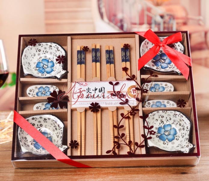 Тому ми пропонуємо такий стильний подарунок для любителів східних смаколиків. Тут Ви знайдете оригінальний керамічний розписний посуд, піали (сеюзару) та стильні палички для суші, як їх називають хасі, з розрахунком на компанію із 4 осіб.