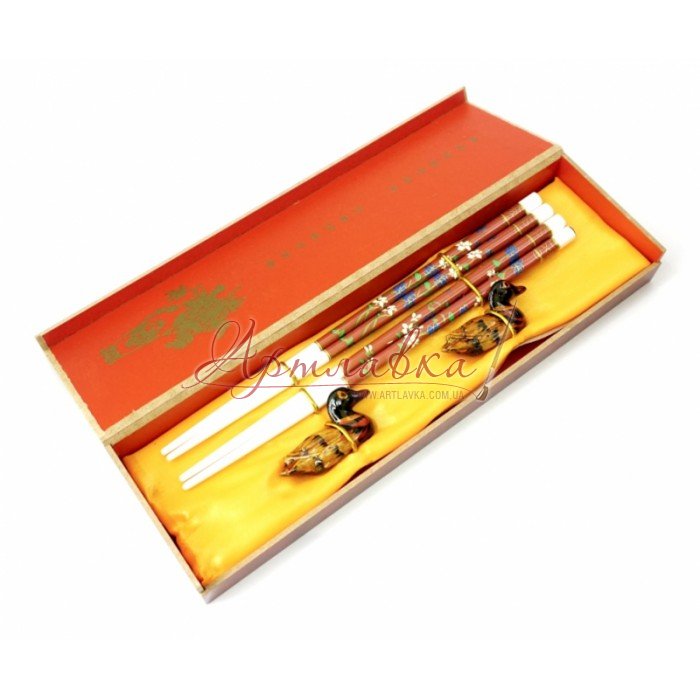 Тому ми пропонуємо такий стильний та яскравий комплект паличок для їжі в подарунковому футлярі. У комплекті не тільки 2 пари паличок для суші, але й стильні підставки у вигляді качечок.