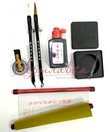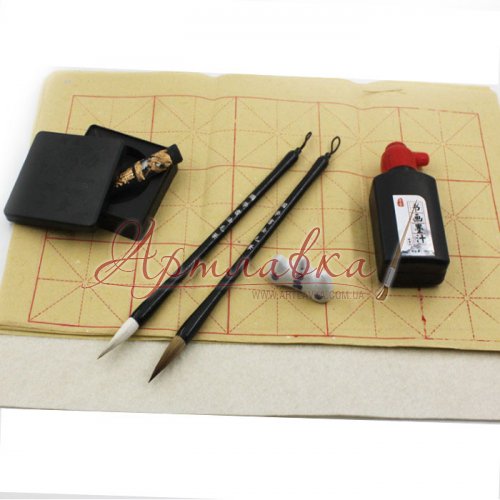 - Два пензлика з натурального волосся. Вся сила, за словами китайських вчителів, таїться на кінчику пензля, а потім виливається на папері за допомогою символів, ієрогліфів, написів.