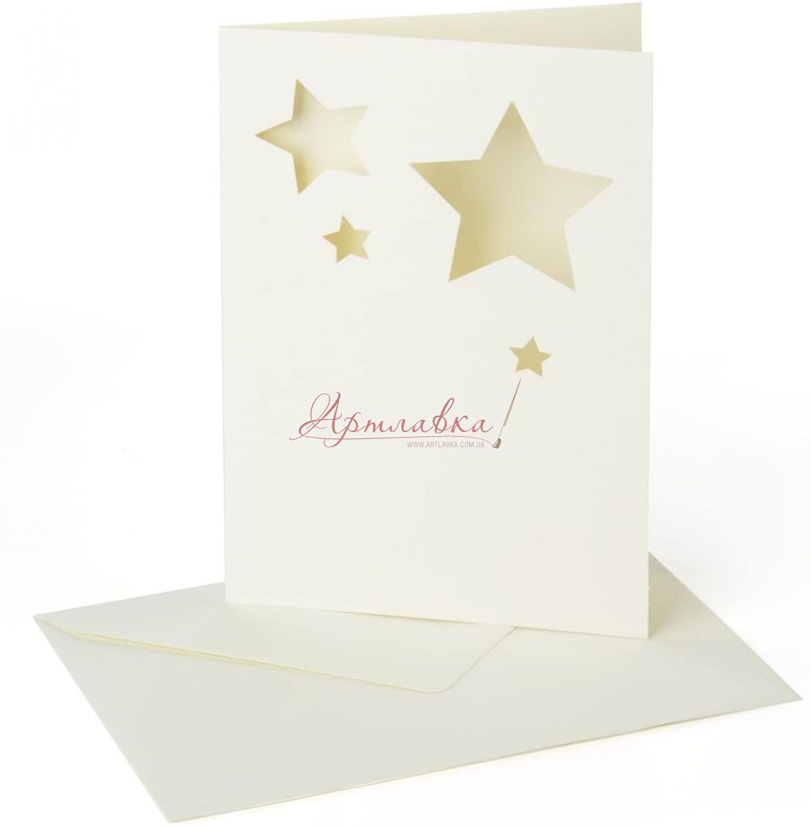 Заготовка для листівки Зірки з конвертом, білий преламутр