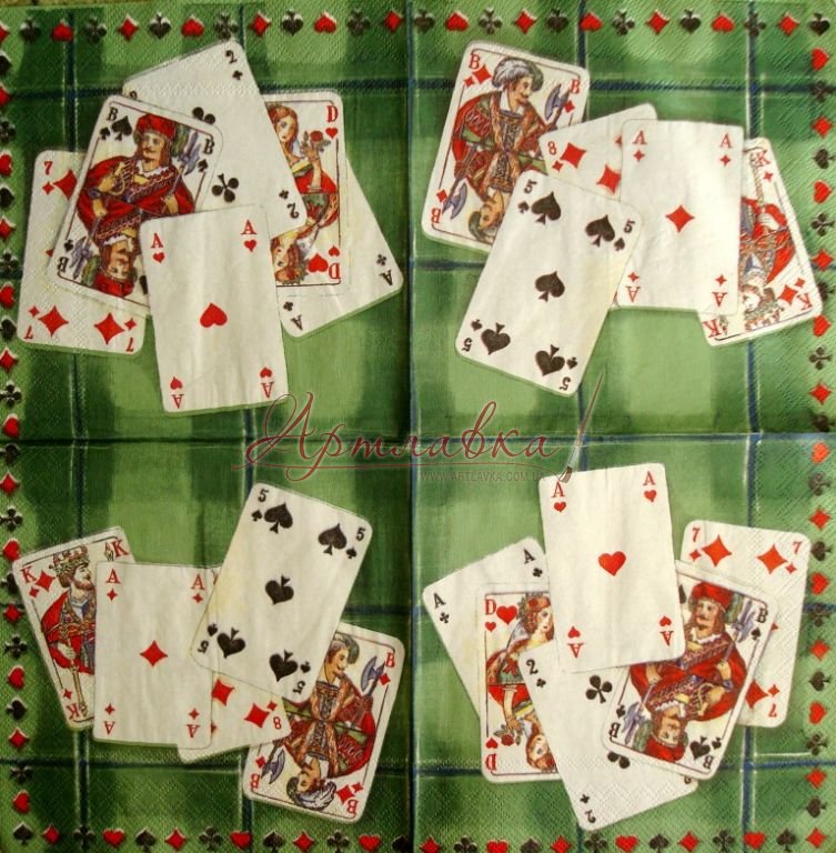 Головна › Декупажна серветка "Карти гральні (більші)", 33*33 см