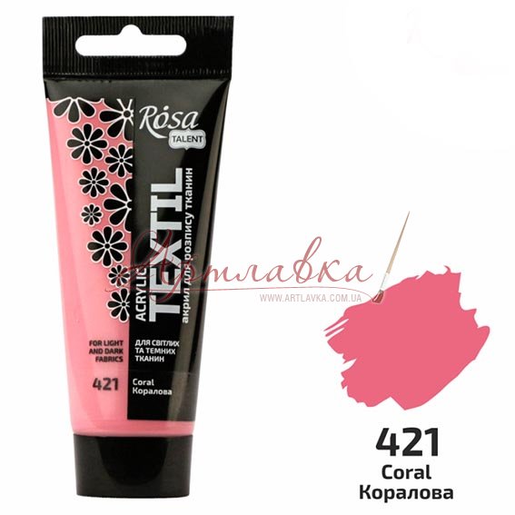 Фарба для тканини, коралова №421, 60мл