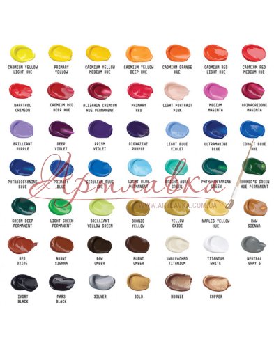 - Фарби легко змішуються, після висихання мають сатиново-напівматовий відтінок. Колірна гама Liquitex Basics включає ряд кольорів з різним ступенем покриваності, що розширює поле можливостей.