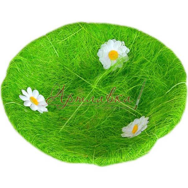 Весняний кошик у вигляді тарілочки з декоративного сіна - натурального фарбованого сизалю. Чудова основа для різних великодніх композицій та декору. Корзинка прикрашена квіточками. Діаметр 23 см, глибина приблизно 5см. Кольори на вибір - жовтий, зелений, помаранчевий.