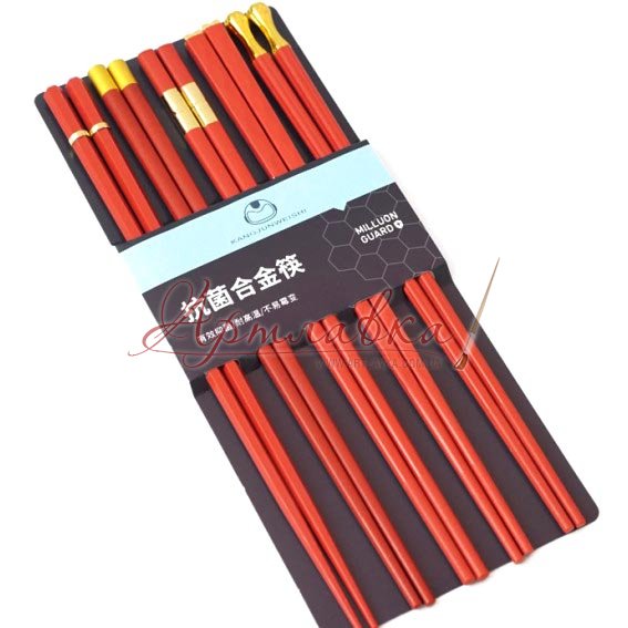 Палички для їжі, 5 пар, пластик, Червоний рубін з золотом
