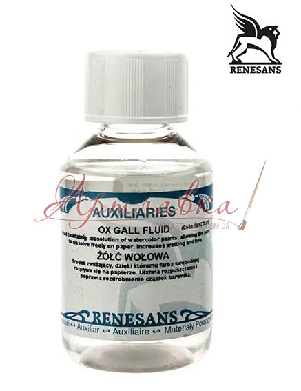 Акварельний медіум для текучості фарб - бичача жовч Renesans. Відмінний засіб, що використовується для посилення розливу акварелі, полегшує розподіл кольору на великих площах.