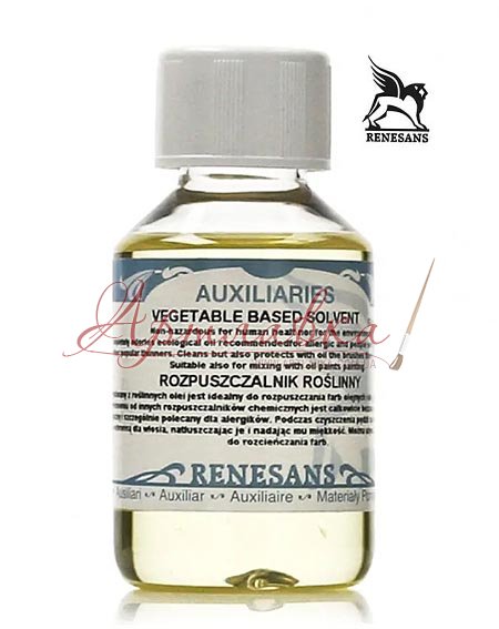 Розчинник без запаху від фірми Renesans - це мінеральний розчинник, який є популярною альтернативою скипидару. Розчинник гіпоалергенний, підходить для використання в умовах студії. Це робить його гарним вибором для тих, хто чутливий до сильних хімічних запахів, або для використання в закритих приміщеннях з обмеженою вентиляцією. Висихає швидше, ніж лляна олія. Розчинник без запаху від Renesans також чудово справляються з очищенням інструментів від олійних фарб, він чудово відмиває пензлі із натурального та синтетичного ворсу, палітри та мастихіни