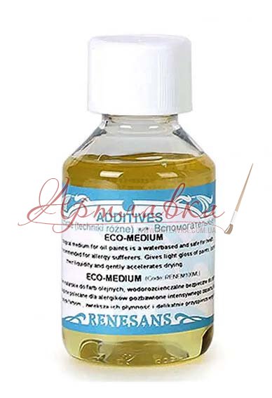 Eсо Medium - це медіум для олійних фарб, з приємним ароматом натуальних мастел, який створений на основі рослинних олій та природних доповнень. Цей медіум дозволяє уникнути взаємодію зі шкідливими розчинниками, що робить його менш небезпечним для здоров'я художника та навколишнього середовища. Він має приємний запах, а також добре розчиняється в олійних фарбах. Він додає фарбі блиск, покращує її стійкість та дозволяє збільшити прозорість. Крім того, він дозволяє збільшити час роботи з фарбою, оскільки сповільнює її висихання.