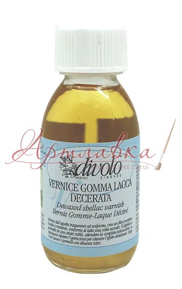 Шелак рідкий для фінішного покриття. Очищений шелак Dewaxed Shellac. Шелак рідкий очищений Dewaxed Shellac від бренду Divolo, це швидковисихаючий лак для позолоти, що підкреслює кольори золота, бронзи або міді, надаючи їм додатковий світлий бурштиновий відтінок. Очищений шелак служить як фінішне захисне покриття для позолоти або можна використовувати для підготовки поверхні. Наголошує на натуральній текстурі деревини. Наносити шелак можна пензликом або спонжем. Після висихання першого шару (середній час висихання становить 15-20 хв) потрібно нанести другий та третій. Інструменти після нанесення шелаку можна очистити за допомогою 94% спирту або уайт-спіриту.