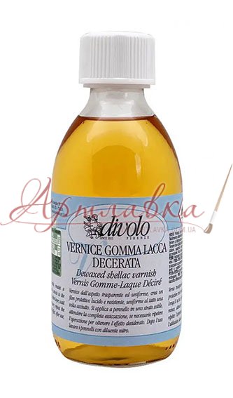 Шелак рідкий для фінішного покриття. Очищений шелак Dewaxed Shellac. Шелак рідкий очищений Dewaxed Shellac від бренду Divolo, це швидковисихаючий лак для позолоти, що підкреслює кольори золота, бронзи або міді, надаючи їм додатковий світлий бурштиновий відтінок. Очищений шелак служить як фінішне захисне покриття для позолоти або можна використовувати для підготовки поверхні. Наголошує на натуральній текстурі деревини. Наносити шелак можна пензликом або спонжем. Після висихання першого шару (середній час висихання становить 15-20 хв) потрібно нанести другий та третій. Інструменти після нанесення шелаку можна очистити за допомогою 94% спирту або уайт-спіриту.